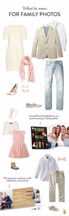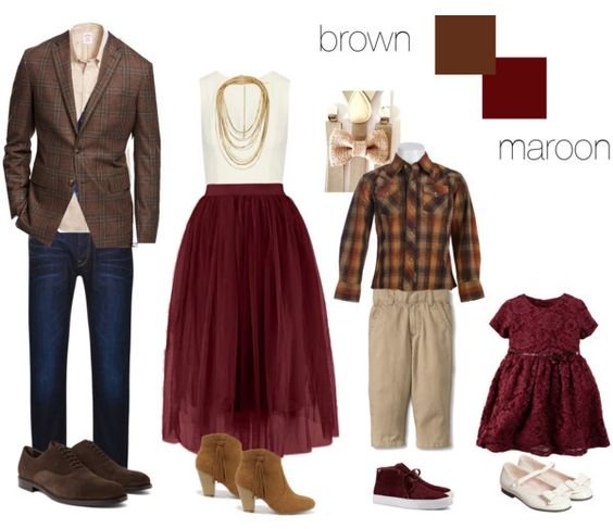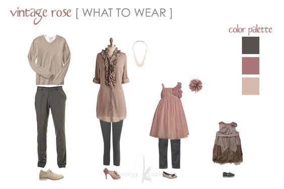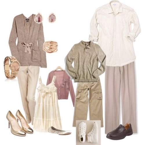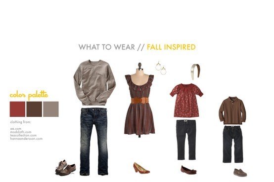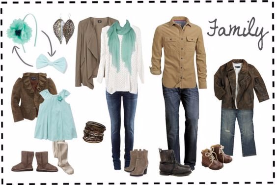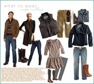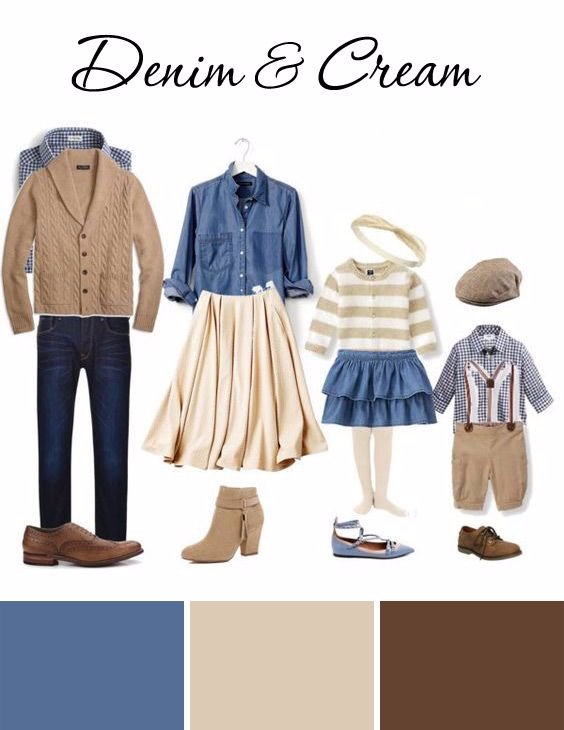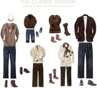 One of the biggest challenges of a family session is the "What do I wear?" question. Remember that your faces should always remain the focus of your portrait so, clothing should all blend together. Don't do the "team sport" picture of matching clothing! However, you do want to compliment each other with your color pallet and style. Here are a few examples of wonderful color combinations that will work together and not be overwhelming.